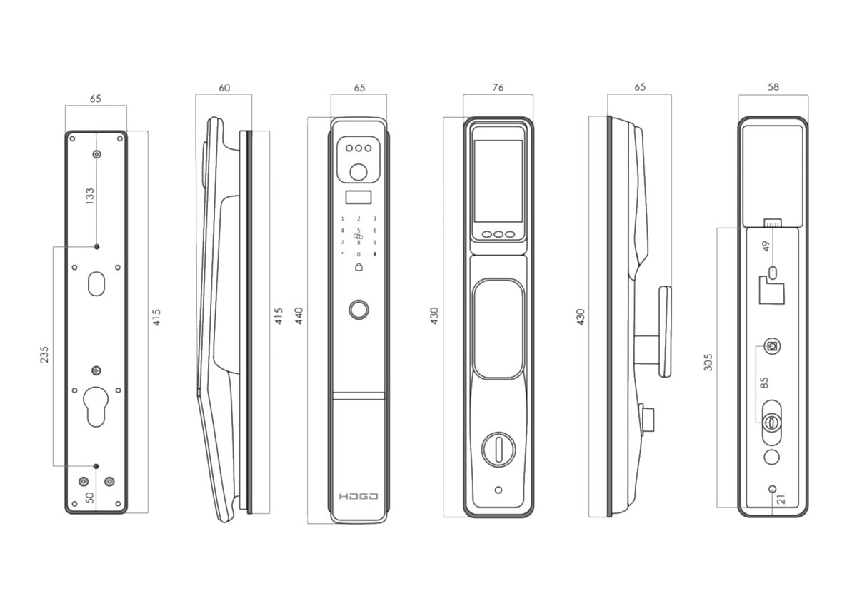 Замок врезной электронный Hogo V05 с распознавание
